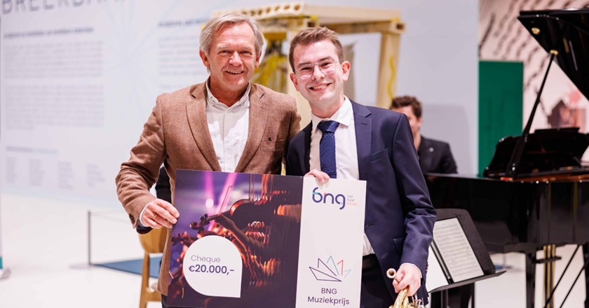 De winnaar van de BNG Muziekprijs is bekend! Hoornist Camiel Lemmens is de winnaar van de BNG Muziekprijs 2024 en ontving de prijs uit handen van Mat Meijs, secretaris van het BNG Cultuurfonds. Deze prijs wordt jaarlijks uitgereikt aan de nieuwe young artist in residence van de Muziekzomer Gelderland. Op 10 december werd tijdens een besloten concert voor vrijwilligers en vrienden van de Nationale Jeugdorkesten Nederland (NJON) bekend gemaakt dat Camiel deze eervolle rol krijgt. De prijs maakt het mogelijk dat Camiel de felbegeerde positie van young artist in residence gaat bekleden tijdens de Muziekzomer Gelderland 2025, een 16-daags festival met voorstellingen, concerten en evenementen op de mooiste locaties in de provincie Gelderland. Dit festival wordt jaarlijks georganiseerd door de NJON en vindt plaats van vrijdag 25 juli t/m zaterdag 9 augustus 2025.
