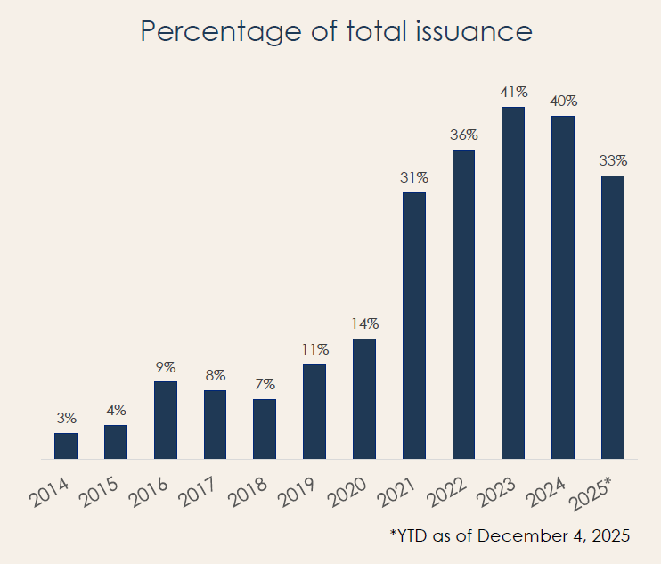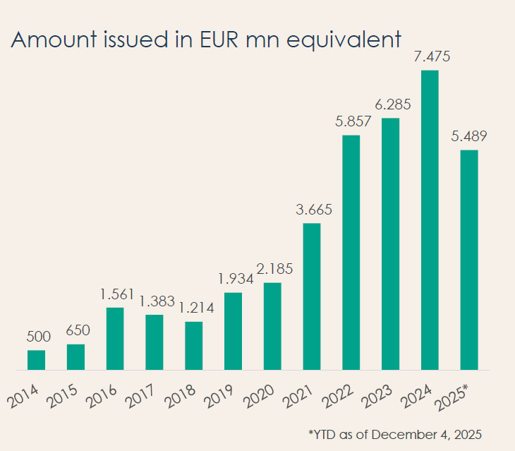 BNG has been actively issuing ESG bonds since 2014. Since then, issuance has grown steadily and BNG has become the largest Dutch issuer of social bonds (source). The annual issuance of ESG bonds forms a substantial part of BNG's funding programme.