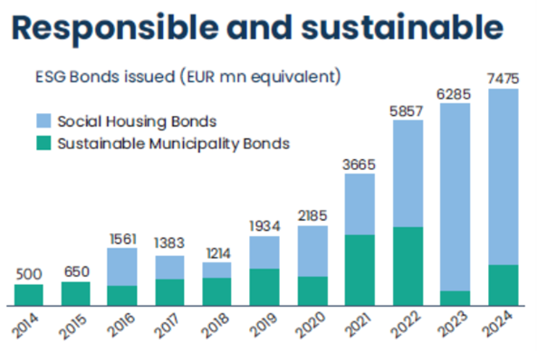 BNG is sinds 2014 actief met de uitgifte van ESG-obligaties. Sindsdien is de uitgifte gestaag gegroeid en is BNG de grootste Nederlandse emittent geworden van sociale obligaties. De jaarlijkse uitgifte van ESG-obligaties vormt een substantieel onderdeel van het fundingprogramma van BNG.